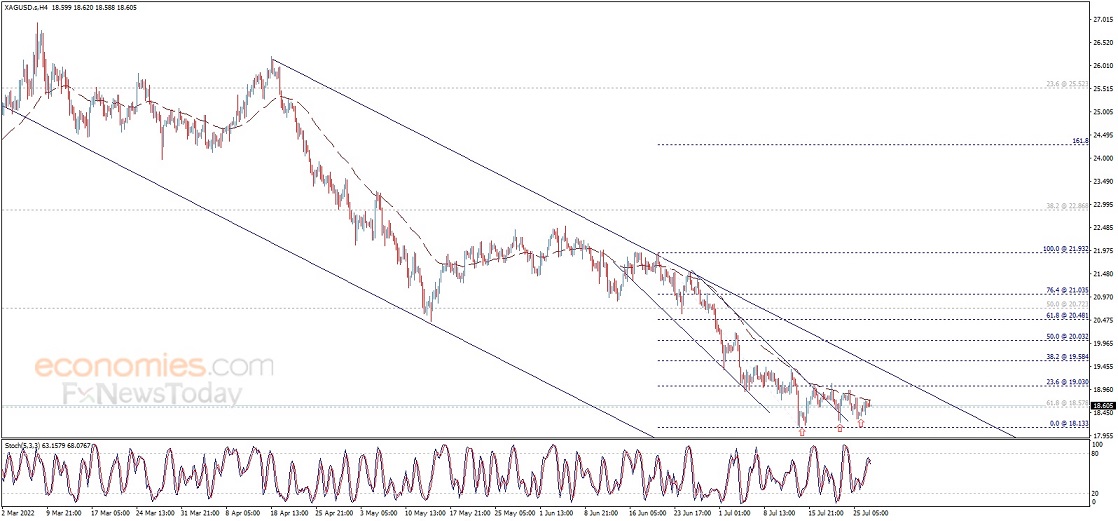 Economies.com预计,今日银价交投将位于支撑位18.30美元/盎司以及阻力位19.00美元/盎司之间。