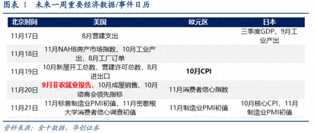 美日、美欧利差收窄。11月13日,10年期美日国债利差为240.5bp,上周四为241.6bp。11月13日,10年期美欧国债利差为136bp,上周四约为137.7bp。