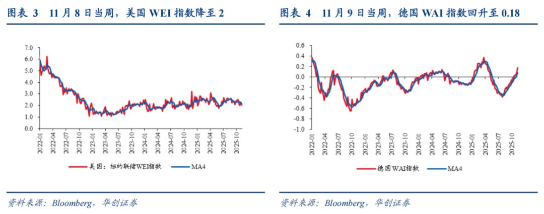 德国经济活动指数回升。11月9日当周,德国WAI指数回升至0.18附近(四周移动平均为0.08),上周为0.08(四周移动平均为0.04)。