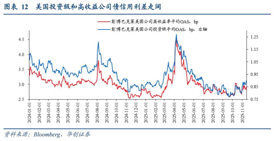 3、信用利差:美国投资级和高收益公司债信用利差走阔