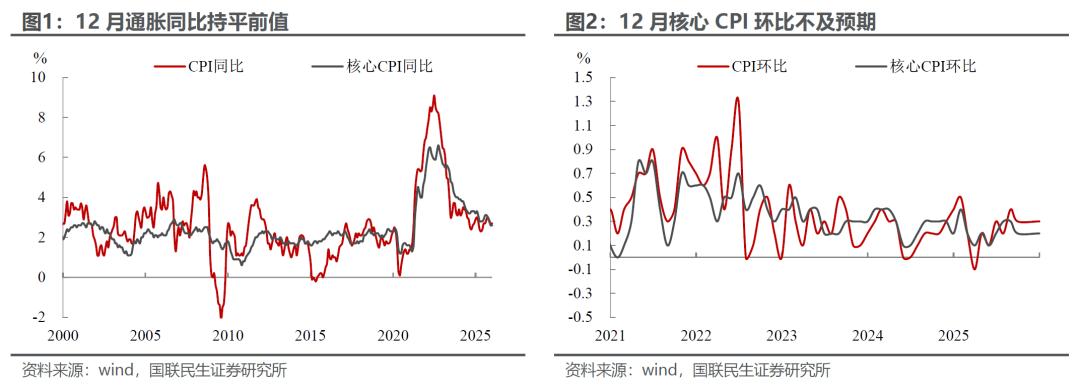 核心通胀基本持平前值:一方面,关税影响下,部分商品价格仍有结构性压力。包括家居和家用品、服装、休闲商品等 12 月同比增速均有进一步回升,但汽车分项是主要拖累;