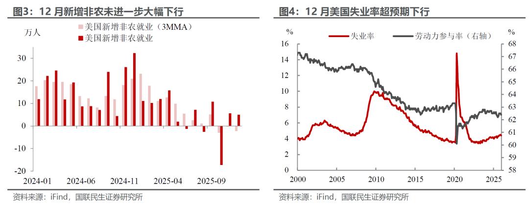但需要注意的是,当前尚未达到触发美联储政策进一步转向的阈值。一方面,随着12月新增非农的平稳回升以及就业率的下降,就业市场的紧迫性已经大幅下降,短期进一步降息的必要性不高;另一方面,通胀水平仍高于2%的目标,且结构性涨价压力犹存。
